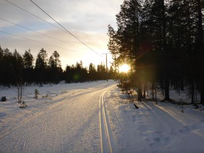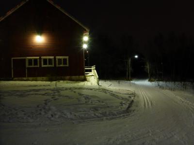 Hier herrscht offensichtlich kein Strommangel, das Licht im Flur und in der Küche brennt durchgehend, ich habe noch nicht für alle Lichter ein Schalter gefunden. Selbst die Loipen werden hier, nach Einbruch der Dunkelheit derzeit ca. halb 4 / 4, beleuchtet. So kann man sich getrost auch abends um 21:00, gesattelt mit einer Stirnlampe, ein zweites Mal am Tag auf die Latten stellen.