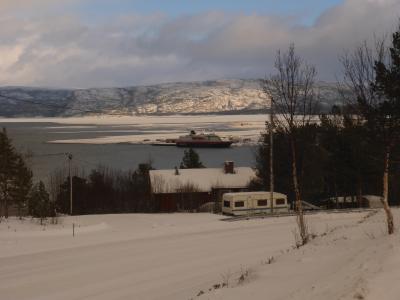 Heute (08.02.) Hurtigruten im Hafen. Normalerweise ist Alta keine Alaufstelle, aber wenn es so stürmt wie gestern Nacht, wird auch mal hier Ankler geworfen: