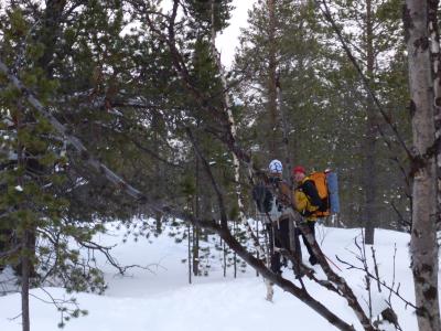Die Phase der Vorbereitung, in Sachen Equipment und Skitechnik, liegt nun hinter uns. Jetzt ist an der Zeit dass Gerlernte in die Theorie umzusetzen. Am Mittwoch (18.02.) mussten wir in Zweiergruppen mit Hilfe von Koordinaten, Karte, Kompass und GPS an eine Hütte finden. Dort haben wir gegrillt und Kaffee gemacht (dies war das erste Mal, dass ich Kaffee aus Schnee getrunken hab). Die Hütte ist immer offen, man kann dort jederzeit übernachten. Muss nur den Besitzern mit einem kurzen Anruf Bescheid geben. Die freuen sich, wenn die Hütte benutzt wird. Gas (falls man in der Hütte kochen will), Töpfe, Werkzeuge, Brennholz, …. Wird alles zur Verfügung gestellt und ist für jeden zugänglich. Scheint als gibt es hier keine Schmuddelkinder (oder Schmuddel-Verwachsene) die solch ein Angebot und Freundlichkeit schamlos ausnutzen… Vielleicht wären die aber auch zu träge um überhaupt dort anzukommen.