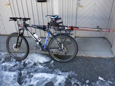 Eine Tour unternahm ich am Donnerstag (02.04.) mit dem Ziel des weltweit ersten permanenten Nordlichtobservatoriums auf dem Haldde Toppen. Ski auf Gepäckträger geschnallt, dank Kabelbinder und hepp!