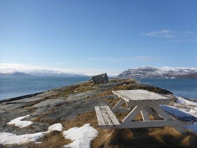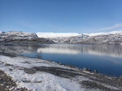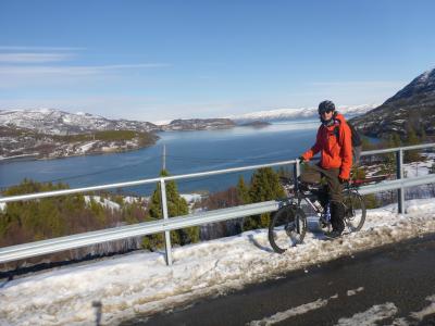 Gestern (04.04) war dann, um den Rhythmus beizubehalten, wieder Sonnenschein. Ich radelte Richtung Rafsbotn. Hab einen Apfel gegessen und bin wieder umgekehrt.