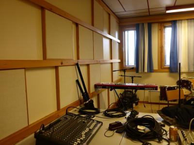 Bau des Musikraumes in Anlehung an das Raum-in-Raum-Konzept mit doppelter Tür.
