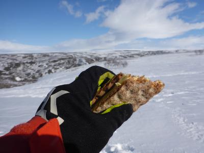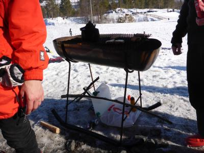 Am Freitag (10.04.) hat die Universität einen Ausflug zum nächstgelegenen Skigebiet veranstaltet, sowie Bus- und Ticketkosten übernommen. Ich musste nur noch ein Brett und Schuhe für 180NOK ausleihen - da waren keine 190 NOK he. Herrliches Wetter und wenige Leute erlaubten es die überschaubare Pistenanzahl häufig zu befahren und zwischendrin Käse und Brot auf dem Grill einschmelzen und einschwärzen.