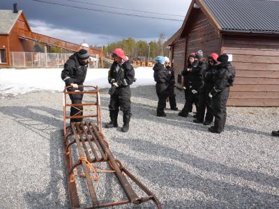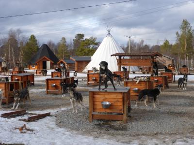 Mittwoch (15.04.) stand ein Ausflug zu einer Huskiefarm in Alta auf dem Studenplan von ATM. Holmen Huskies beherbergt 89 Hunde, sowie ein Hunde/Katzen-Hotel. Socken, Handschuhe, Mütze, Schuhe und "Bärenfell" (inklusive Hundegeruch) wurde allen von uns zur Verfügung gestellt.